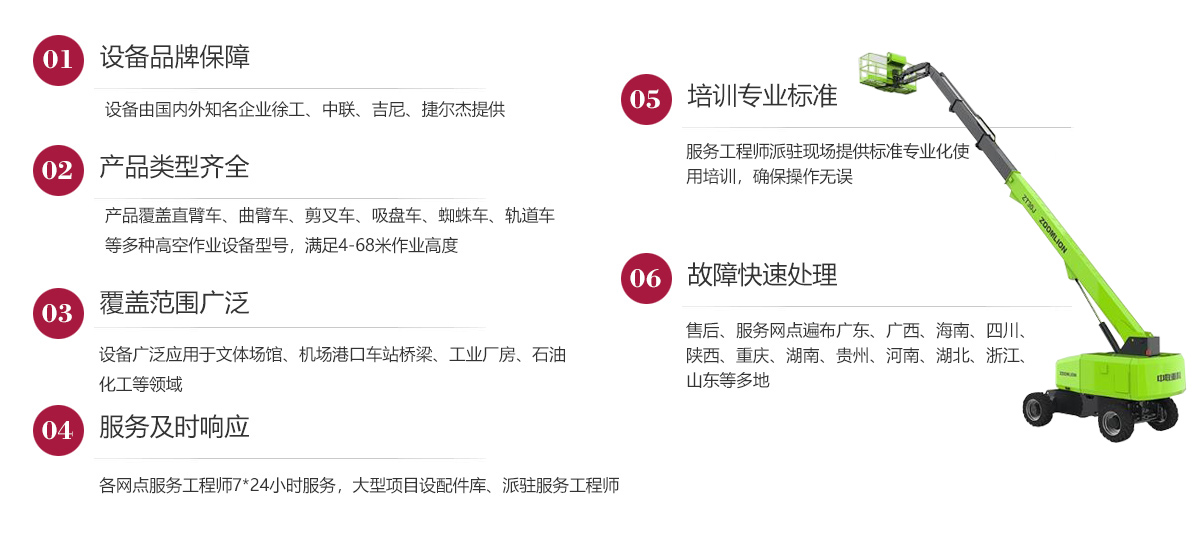 公司在發(fā)展歷程中堅定實行大客戶戰(zhàn)略,致力于以優(yōu)質(zhì)的服務打造公司的品牌和核心競爭力,現(xiàn)已在廣東、廣西、海南、四川、陜西、湖南、重慶、河南、湖北、貴州等多地建立了完善的售后服務網(wǎng)點,24小時為客戶排憂解難。今后我們將結(jié)合市場需求,不斷創(chuàng)新業(yè)務模式、優(yōu)化設備結(jié)構、加強運營管理、擴大服務網(wǎng)點、提升服務水平,形成以設備租賃、銷售、二手設備交易等全方位一站式的全面服務體系,用高標準高質(zhì)量的服務讓客戶在和公司合作的過程中實實在在感受到省心、省力、省錢的體驗,在客戶心目中樹立“家鋒”的品牌形象。
